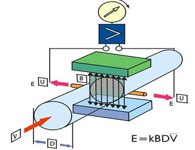 式中k, D為常數,由于勵磁電流是恒流,故B也是常數,則由E=KBdV可知,體積流量Q與信號電壓E成正比,即流速感應的信號電壓E與體積Q成線性關系。因此,只要測量出E就可確定流量Q,這是電磁流量計的基本工作原理。