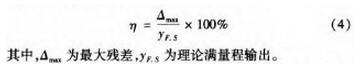 本文采用*小二乘法進行線性度評定,即擬合直線為*小二乘直線。*小二乘直線保證了傳感器至極輸出的平均值對它的偏差的平方和為*小,即可以保證擬合直線得到的結(jié)果與實測結(jié)果之間的偏差很小,更具可靠性。根據(jù)定義,線性度即是校準(zhǔn)曲線對這條*小二乘擬合直線的偏離程度。