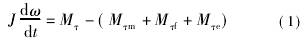 式(1)中通常電磁反作用力矩Mτe比較小,可以忽略。正常工作條件下,可認為管道內(nèi)流量不**間變化,即葉輪以穩(wěn)定的角速度旋轉。即存在
