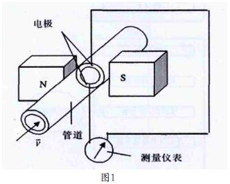 濃硝酸流量計的設(shè)計是根據(jù)法拉*電磁感應(yīng)定律,導(dǎo)管中導(dǎo)電的流體被看作導(dǎo)體,管道的內(nèi)徑可看作道導(dǎo)體的長,原理圖如圖1所示,兩電極裝到與管道的中心軸和磁場方向組成的平面相垂直,拾取液體產(chǎn)生的感應(yīng)電動勢。感應(yīng)電動勢為: