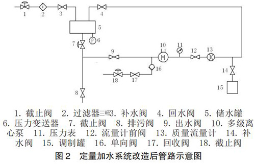 根據設計思路,對定量加水系統的管路進行了改造設計,改造后管路示意圖如圖 2 所示。
