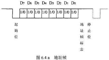 插入式電磁流量計等節(jié)點設備和站內(nèi)PC機間的通信采用異步串行通訊控制規(guī)程,并采用地址位喚醒握手協(xié)議。因此在協(xié)議中規(guī)定了傳地址和傳數(shù)據(jù)兩種不同的幀格式,如圖.64所示。地址幀和數(shù)據(jù)幀由11位構成,幀格式為l位起始位,l位停止位,8位數(shù)據(jù)位,1位*9位。我們將*9位設定為“地址/數(shù)據(jù)指示位”,用來區(qū)分所發(fā)送/接受的幀信息是地址幀還是數(shù)據(jù)幀。*9位為1,表示PC機發(fā)送/接受的是“地址幀”*9位為O,表示主機發(fā)送/接受的是“數(shù)據(jù)幀”。命令幀與校驗和的發(fā)送格式與數(shù)據(jù)幀相同,因此可由數(shù)據(jù)幀演化得到。