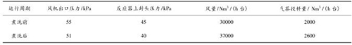 智能型渦街流量計(jì)煮洗吹掃后,裝置運(yùn)行期間無(wú)燃爆事故,且裝置運(yùn)行的風(fēng)量明顯提高,系統(tǒng)阻力明顯降低,投料量增加。現(xiàn)將煮洗前后的運(yùn)行數(shù)據(jù)對(duì)比如下: