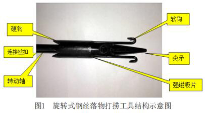 在注水井分層測試工作中鋼絲落物打撈一直是困擾采油測試工的一大難題,據不完全統計因井下落物而造成作業重配的注水、注聚井中絕大部分是鋼絲落物造成的,占總落物重配作業井數的50%以上。造成這一現象的主要原因是絲落物不容易被抓牢而且上提打撈到的鋼絲容易形成較大的鋼絲團,堵塞上提通道,造成二次落物,打撈失敗。因此,加工通用的有效的鋼絲落物打撈工具,制定合理的打撈方案是提高打撈鋼絲落物的成功率的關鍵。