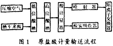 新工藝省去了高位酸槽、酸計量箱和酸霧吸收器,鹽酸計量由電磁流量計控制。該系統是在負壓狀態下運行,消除了溢酸和鹽酸的揮發,解決了對一些設備和設施的腐蝕,以及酸霧對環境的污染問題,使用比較安全可靠。