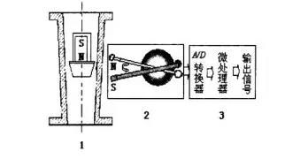 從以上原理分析可知,浮子的高度檢測是通過機(jī)電轉(zhuǎn)換單元精確測量懸浮在錐形管中的位置,通常通過磁鋼耦合,帶動機(jī)械擺桿轉(zhuǎn)動,使角位移傳感器角度發(fā)生變化,輸出電信號,通過對信號進(jìn)行處理,進(jìn)而換算處實(shí)際流量。浮子位置隨流量變化頻繁運(yùn)動,可見該機(jī)電轉(zhuǎn)換單元必須非接觸式的,機(jī)械磨損小,工作可靠穩(wěn)定,溫度特性好,線性度較高的才能保證輸出的精度。所以傳感器性能的提高意味著金屬管浮子流量計(jì)精度的提高。工況條件放寬,使浮子流量計(jì)能在更廣泛的工作環(huán)境中得到應(yīng)用。所以本文將對如何提高角度位移測量精度和環(huán)境適應(yīng)性進(jìn)行研究,如何提高測量的精度?
